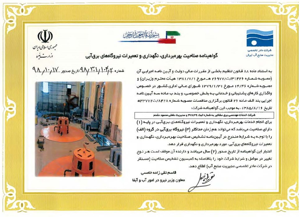 گواهینامه صلاحیت پیمانکاری نیروگاه های برق آبی