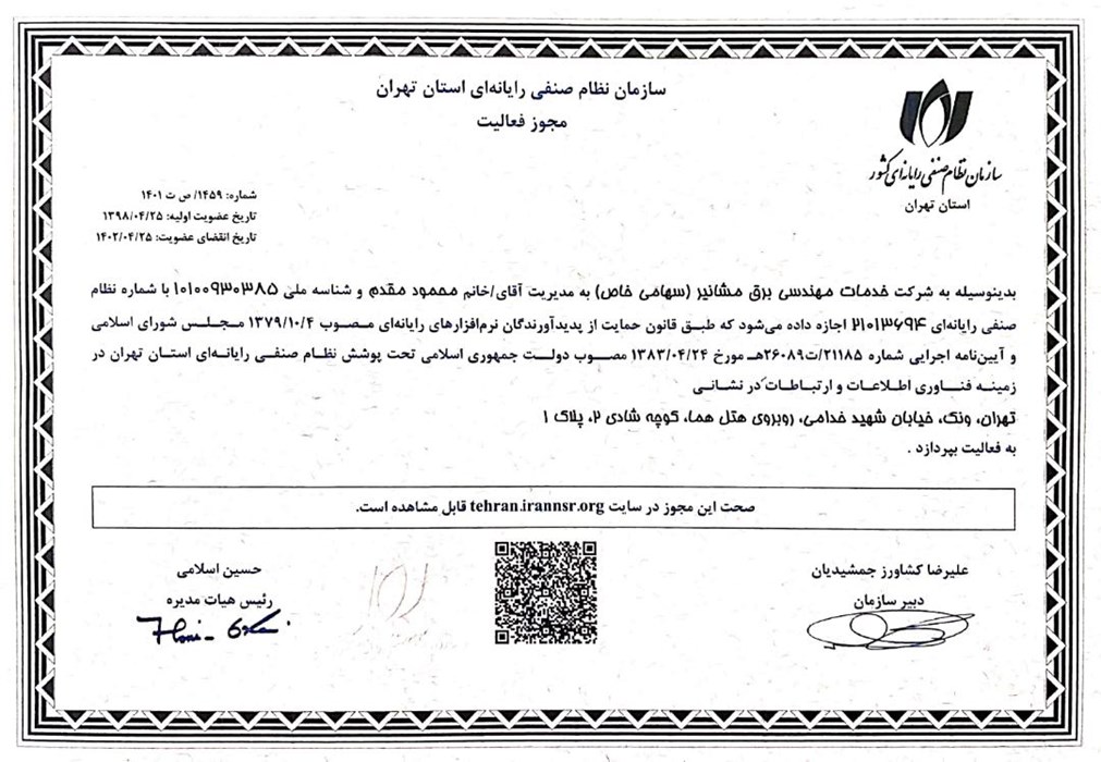 مجوز فعاليت مشانير در سازمان نظام صنفي رايانه اي کشور